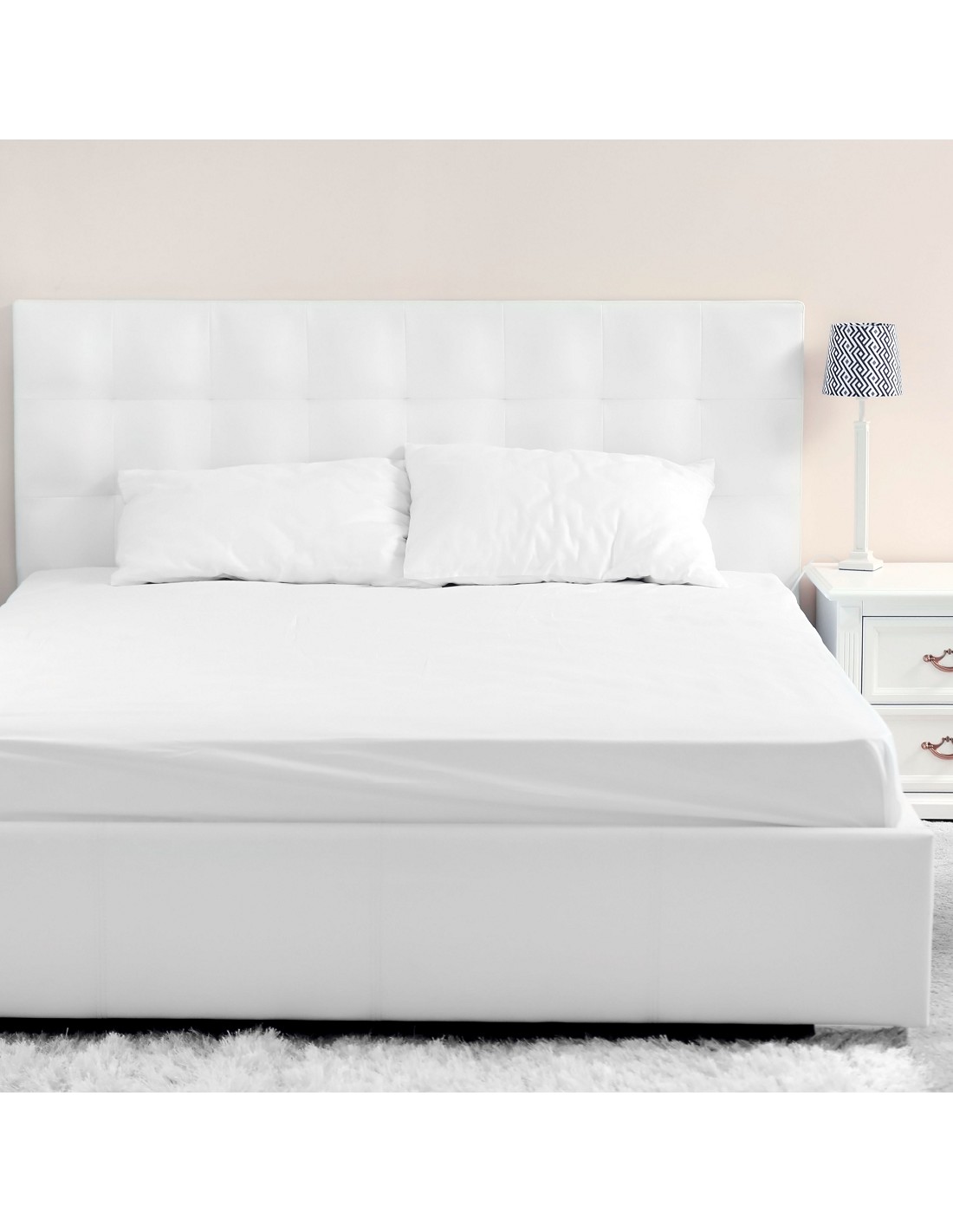 Juego de sábanas blancas de algodón compuesto por 3 piezas o 4 piezas según medida.