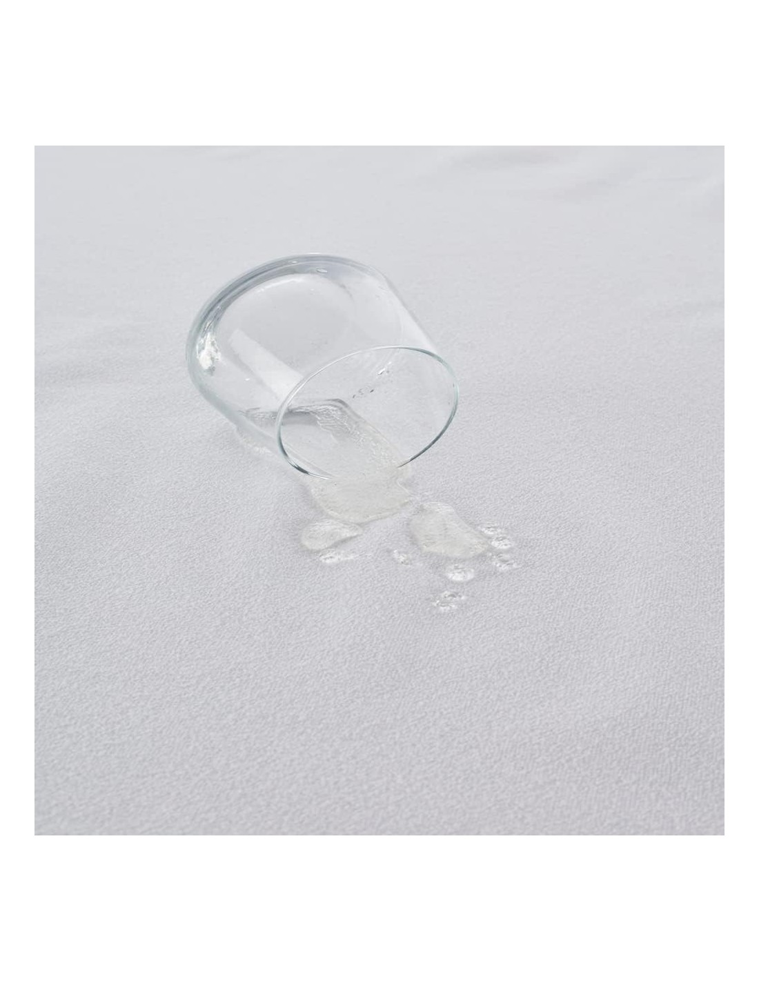 Protector que tiene en su cara inferior una lámina de P.U (Poliuretano) que asegura su impermeabilidad dejando transpirar y que no provoca molestos ruidos con el movimiento a diferencia de otros protectores de PVC.