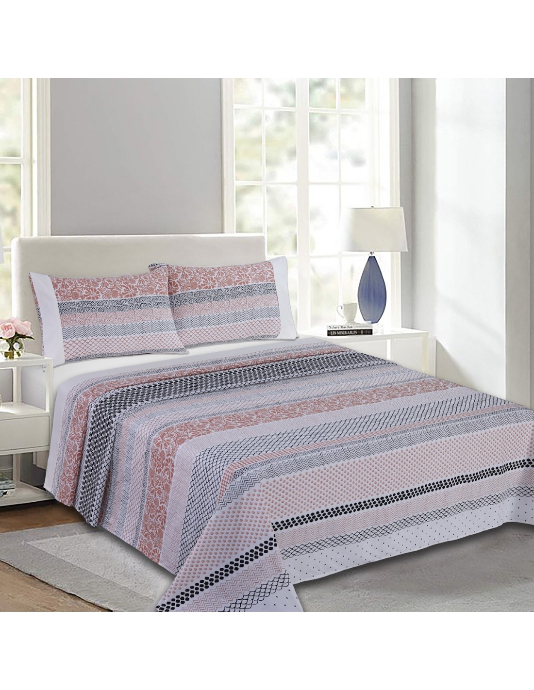 Juego Sábanas de 3 o 4 piezas de gran calidad con Percal 144 hilos y tejido 50% Algodón 50% Poliéster.